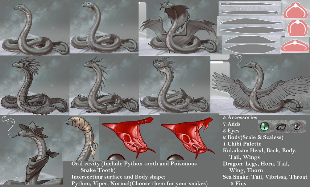 Sea Snake Bundle: Tail, Vibrissa, Throat, 3 Fins